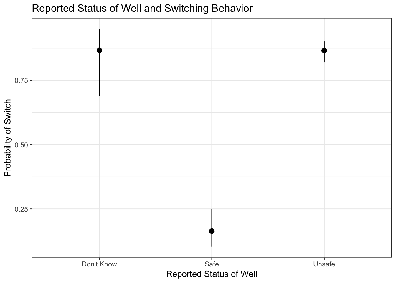 A clear indicator of switching behavior is also strongly linked to how information is spread, and what information people have. People who did not know the status of the well had a lot of uncertainty about whether they would switch or not compared to people who did know that the well was unsafe. Combined with a more clear and systemitized way of indicating which wells are safe and which are not safe, a way of educating key people in the village about the safety of wells is crucial for increasing switching behavior.